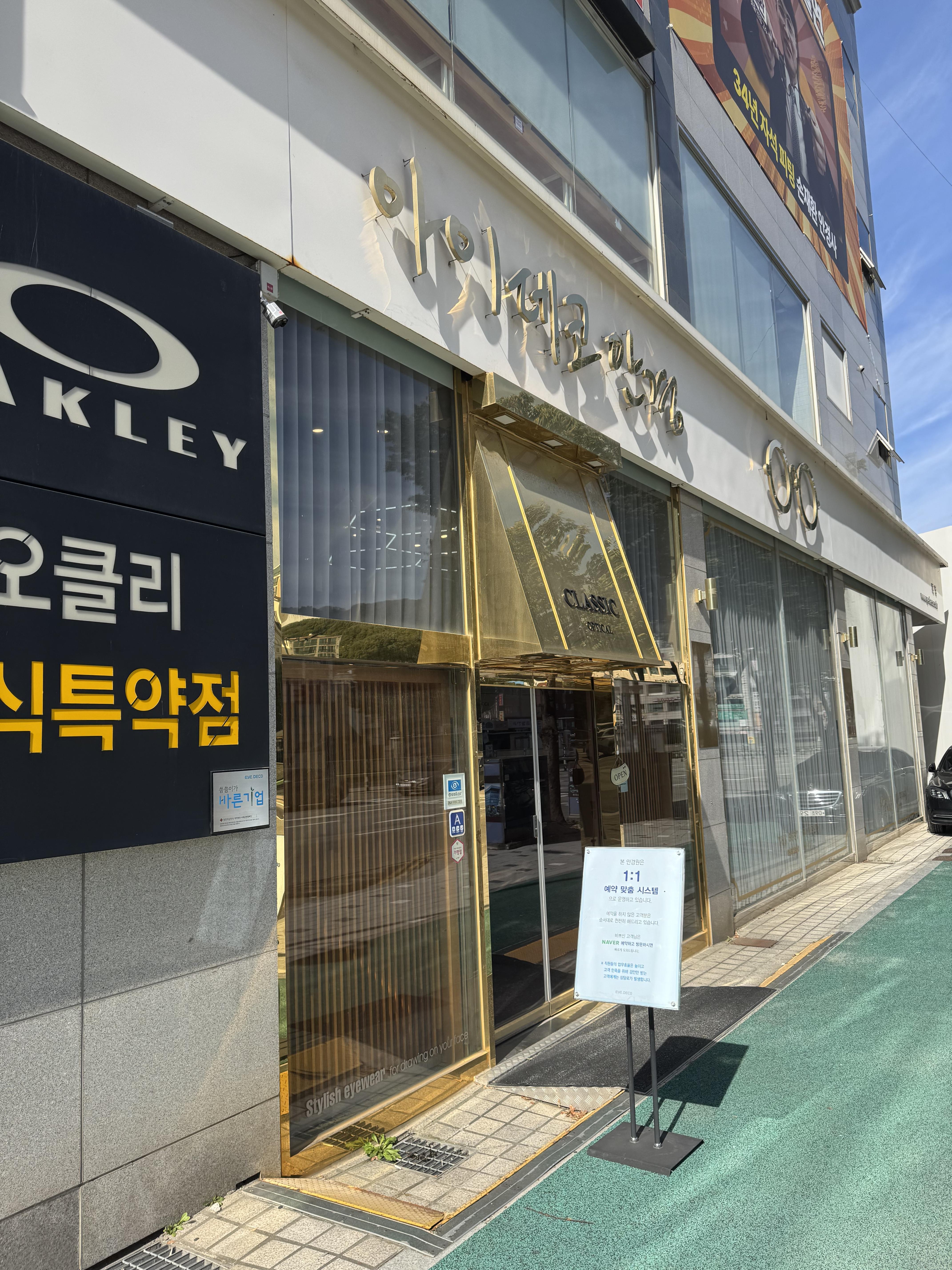 안경을 받고 협업 안경점은 아데코안경에서 도수 렌즈를 구매 함. 도수 렌즈로 교체하는데 일주일 시간이 걸린다.